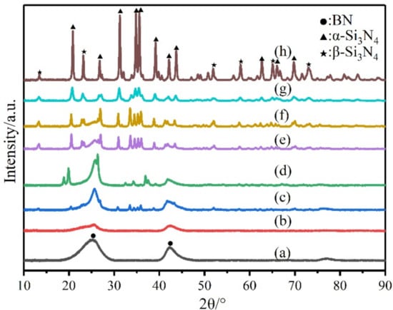 - Tan, J.; Ge, M.; Yu, S.; Lu, Z.; Zhang, W. Microstructure and properties of ceramic fibers of h-BN containing amorphous Si3N4. Materials 2019, 12, 3812. [Google Scholar] [CrossRef] [PubMed] [Green Version]