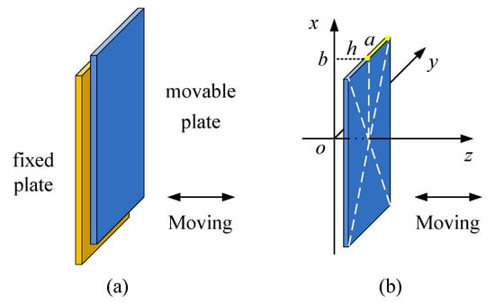 Suppose that the plate is parallel to the other plate in the x–y plane of a Cartesian coordinate system, as shown in Figure 3b, and the dimensions of the plates are much larger than the distance between them. In this case, the effect of squeeze-film air damping can be expressed by the Reynolds equation [46]: