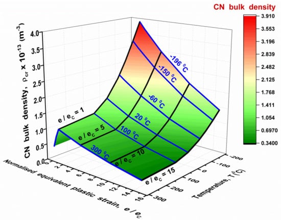 The theoretical dependences of CN bulk density ρ on the magnitude of plastic strain and temperature for reactor pressure vessel (RPV) RPV steel are shown in Figure 1.