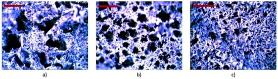 The microscopic images, after approximately 300× magnification of the RS/8452 (a); RS/8180 (b), RS/8411 (c).