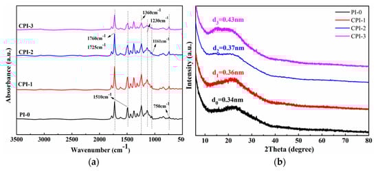 (a) ATR—FIR spectra and (b) XRD of the CPI films.