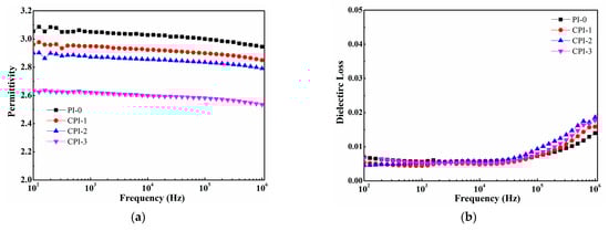 (a) Permittivity and (b) dielectric loss of the CPI films.