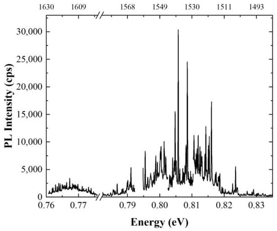 Low-temperature (T = 4.5 K) photoluminescence (PL) spectrum from planar Scheme 0. (μW) using single-photon superconducting nanowire detectors.