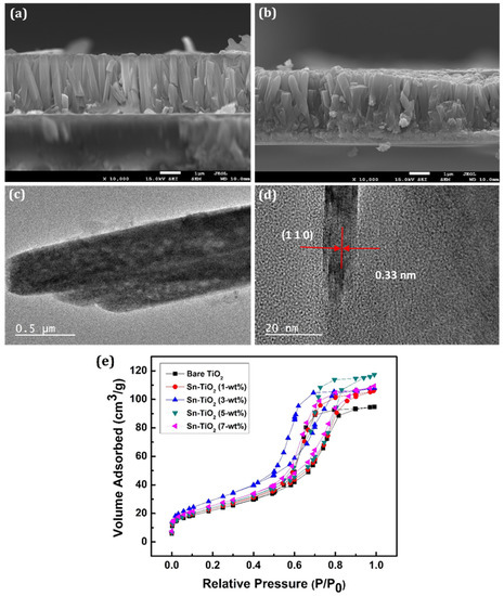 - Arunachalam, A.; Dhanapandian, S.; Manoharan, C. Effect of Sn doping on the structural, optical and electrical properties of TiO2 films prepared by spray pyrolysis. Physica E 2016, 76, 35–36. [Google Scholar] [CrossRef]