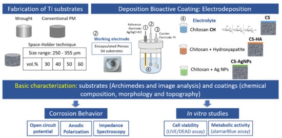 Manufacturing steps of coated porous Ti substrates and its characterization.