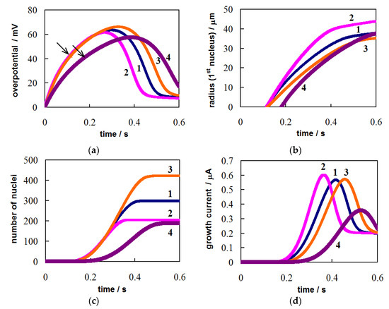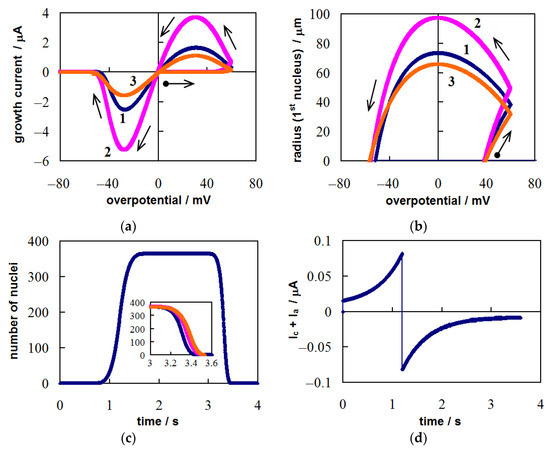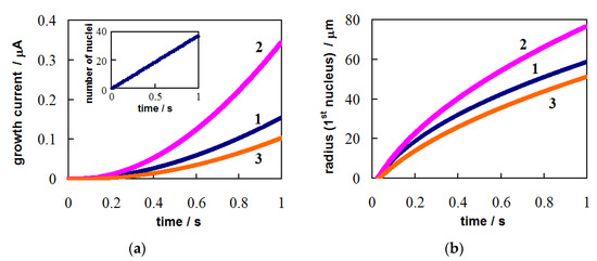 - Isaev, V.A.; Grishenkova, O.V. Kinetics of electrochemical nucleation and growth. Electrochem. Comm. 2001, 3, 500–504. [Google Scholar] [CrossRef]