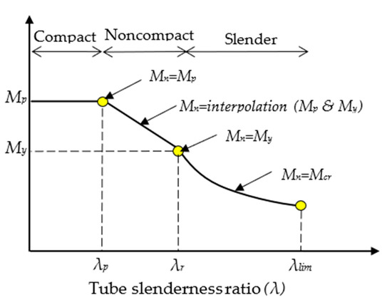 Moment vs. slenderness ratio relationship of the tube’s cross-section.