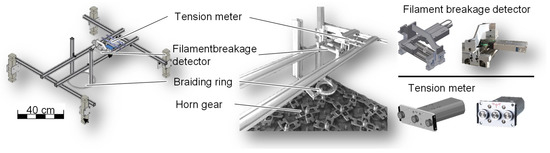- Engels, H. Handbuch der Schmaltextilien—Flechttechnologie Teil 2: Maschinen und Verfahren zur Erzeugung von Flechtprodukten MIT Spezielle physikalische und Chemische Anforderungen, 1st ed.; Springer: Berlin/Heidelberg, Germany, 1994. [Google Scholar]