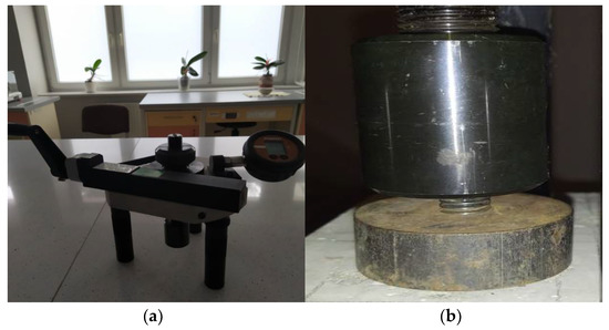 Pull-off testing device (a) and the setup of device with the specimen (b).