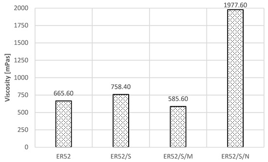 The viscosity of resins for individual recipes is shown in Figure 6 [75].