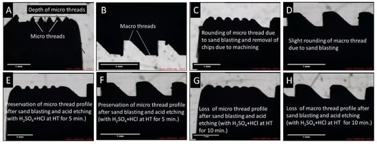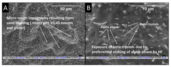 - Ban, S.; Iwaya, Y.; Kono, H.; Sato, H. Surface modification of titanium by etching in concentrated sulfuric acid. Dent. Mater. 2006, 22, 1115–1120. [Google Scholar] [CrossRef]