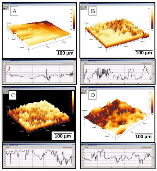 3.3. Surface Roughness and Hydrophilicity