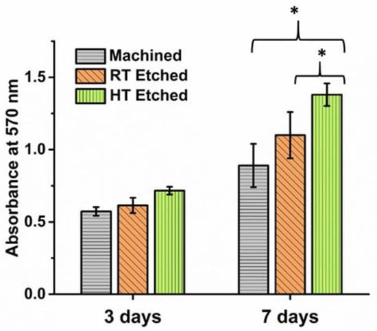 3.5. In Vitro Biocompatibility Study of Two Implant Surfaces