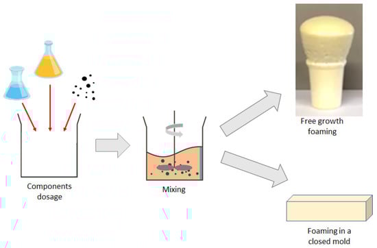 PUR composites were prepared using the one-step method, presented schematically in Figure 1.
