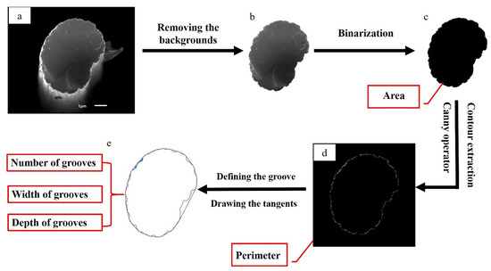 CF is mainly manufactured by two methods: the dry-jet wet spinning process and the wet spinning process [18,19,20,21]. The surface of CF manufactured by the dry-jet wet spinning process is smooth, but the surface of CF manufactured by wet spinning is rough and full of grooves [18,22,23]. These grooves are distributed along the axial direction of CF [24,25], and their distribution on the CF surface is random. Roughness (Ra) is a parameter to describe the average fluctuation of CF surface structure. Usually, Ra is characterized by atomic force microscopy (AFM) [26,27,28,29]. However, AFM cannot scan the CF surface in 360°. Some deviations may occur in the test of Ra when the CF filament has a very irregular cross-section. More importantly, Ra cannot give out a more accurate message of all grooves. A new method for characterizing the surface microstructure of carbon fiber is urgently needed.