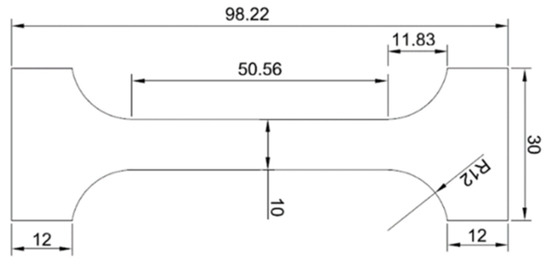 The dimensions of test pieces (Figure 1) were proposed and calculated. For tensile strength measurement of soldering alloys, three specimens of each experimental soldering alloy were used. The loading rate of the specimen was 1 mm/min. The results of the tensile test are documented in the graph in Figure 15.