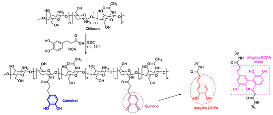 - Kim, K.; Ryu, J.H.; Lee, D.Y.; Lee, H. Bio-inspired catechol conjugation converts water-insoluble chitosan into a highly water-soluble, adhesive chitosan derivative for hydrogels and LbL assembly. Biomater. Sci. 2013, 1, 783–790. [Google Scholar] [CrossRef]