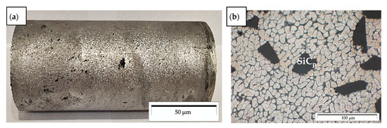 Aluminum matrix composites reinforced by silicon carbide (SiC) are a material solution successfully applied in the automotive field [8,9,10]. The popularity of these composites is due to a number of their properties, such as wear resistance, stiffness, compressive strength, low density, low coefficient of thermal expansion, good casting properties, and low production costs [11,12]. This kind of composite is widely used in tribological conditions where material is constantly subjected to variable loads and high-temperature conditions. For this reason, AMCs reinforced with SiC particles need to show high stability of tribological properties regardless of changing working conditions. These special types of materials are composites used in conditions where the surface is constantly subjected to wear, such as cylinder liners, brake disk, or pistons of engines or compressors [13,14,15,16,17].