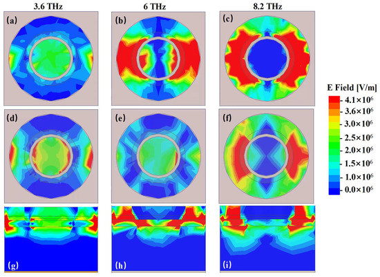 Figure 6. It is obvious that different absorption frequencies correspond to different electric field patterns. For