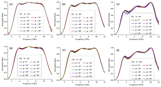 Besides, the absorption spectrum under varied oblique incidence in both the TE and TM modes are studied, as depicted in
