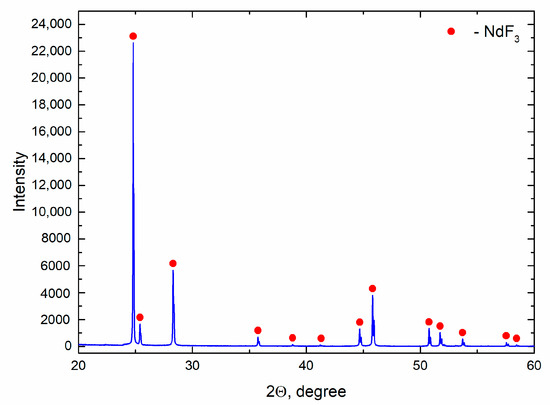 Analysis of the oxygen content using oxygen analyzer LECO OH836 indicated that its content in the prepared NdF3 does not exceed 0.04 wt%.