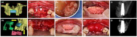 Alveolar bone remodeling and resorption processes following tooth removal induce gradual changes in both soft and hard tissue dimensions [1]. Prosthetically driven bone regeneration procedures are therefore required to reconstruct ridge contours for implant placement in the prosthetically ideal position and achieve optimized esthetic and functional outcomes [2]. Numerous techniques have been used to increase the residual bone volume, such as guided bone regeneration (GBR), autogenous bone block grafting, ridge splitting, and distraction osteogenesis [3,4,5,6]. GBR has become a routine and reliable therapy for the treatment of horizontal bone defects [7,8,9].
