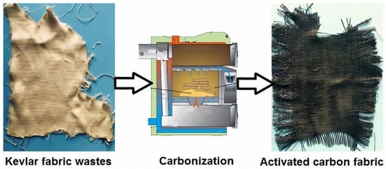 Representation of activated carbon fabric preparation from Kevlar fabric waste.