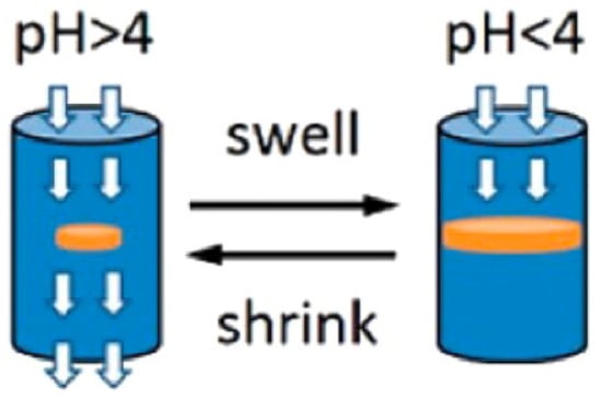 pH-responsive flow regulating smart valve. Reprinted from reference [110], with the permission of American Chemical Society, Copyright 2016.
