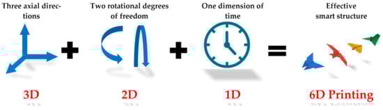 Concept of 6D printing. Reprinted with permission from reference [115], Copyright 2021 by the authors and license MDPI, Basel, Switzerland.