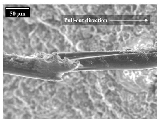 In accordance with the Mode I mechanism found, i.e., fibre pull-out, the failure is mainly defined by the interphase/contact zone. However, the abrasion of fibre material can affect the fibre through the reduction of its cross-section and stress peaks.