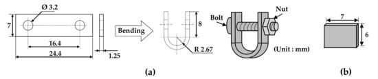 Dimensions of (a) a U-bend specimen and (b) a flat specimen for the immersion corrosion test.