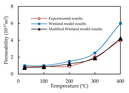 - The modified permeability prediction values were closer to the measured permeability value. The modified Winland model was more suitable for the permeability prediction of granite at high temperatures.