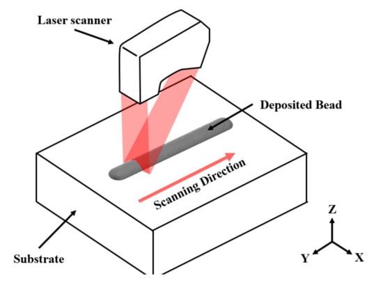 3D triangulation method using a laser scanner. The width and height of the deposited bead were measured.