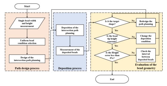 A flow chart was constructed to verify the sequence of the deposition process (Figure 9). A multi-layer deposition experiment using the suggested path planning was designed.