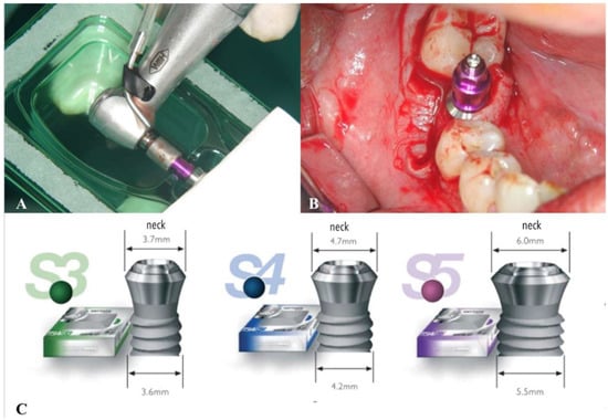 - Buser, D.; Weber, H.P.; Bragger, U.; Balsiger, C. Tissue integration of one-stage ITI implants: 3-year results of a longitudinal study with Hollow-Cylinder and Hollow-Screw implants. Int. J. Oral Maxillofac. Implant. 1991, 6, 405–412. [Google Scholar] [CrossRef]