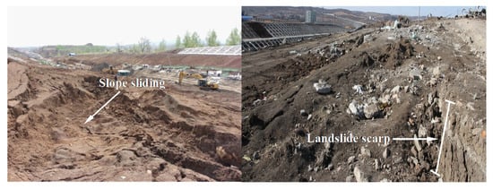 The cutting slope failures along the high-speed railway (the left figure is from [14]).