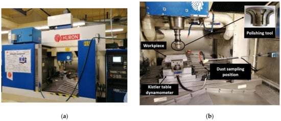 - Saidi, M.N.; Songmene, V.; Kouam, J.; Bahloul, A. Experimental investigation on fine particle emission during granite polishing process. Int. J. Adv. Manuf. Technol. 2015, 81, 2109–2121. [Google Scholar] [CrossRef]