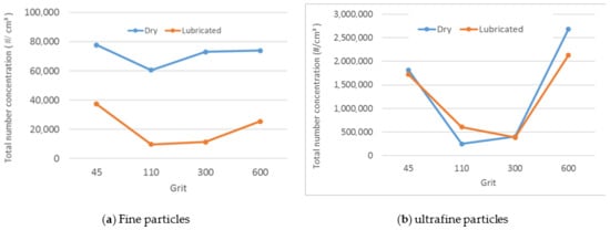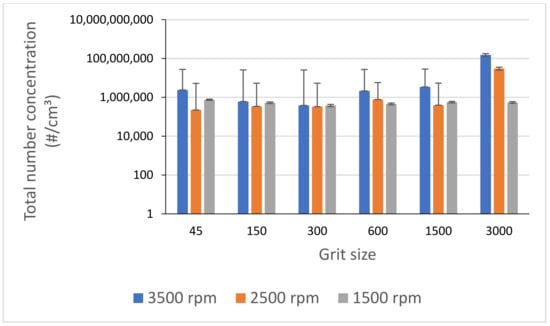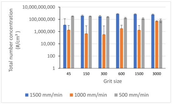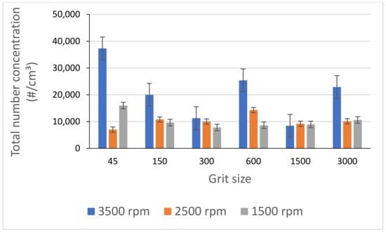 - Particle generation is affected by the grinding speed and feed rate. A combination of 1500 rpm and 1000 mm/min, while not the ideal one, is the best for reducing FP and UFP emissions.
