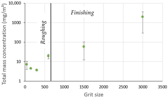 - Increase in tool grit size from 50 to 3000 decreases emission of fine particles but increases the generation of ultrafine particles. As the tools must be used in succession to achieve a glossy and smooth edge finishing, particle emission cannot be controlled by grit size in such cases.