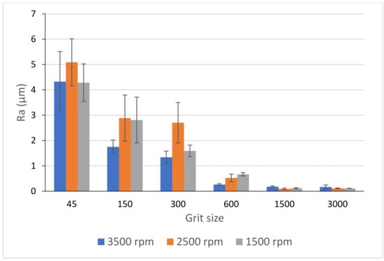 | Tool Grit Designations | Abrasives Sizes (µm) | Speed [RPM] | Feed Rate [mm/min] |