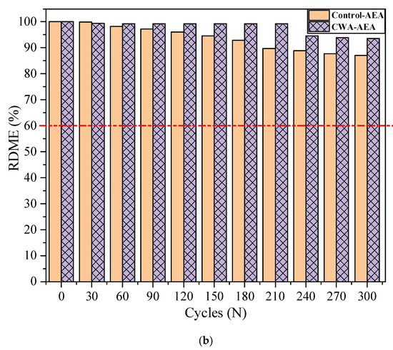 Eight 76 × 102 × 406 mm (3″ × 4″ × 16″) specimens were also prepared in accordance with ASTM C666 [36] requirements in order to investigate the concrete’s resistance to freezing/thawing cycles. After being removed from the molds, specimens were cured for 21 days in a water curing tank (23 ± 2 °C in temperature). Ten cylinders of Φ100 × 150 mm (Φ4″ × 8″) were constructed for the control and CWA modified concrete in the self-sealing experiment. All cylinders were kept in a laboratory and cured at ambient temperature prior to cracking.