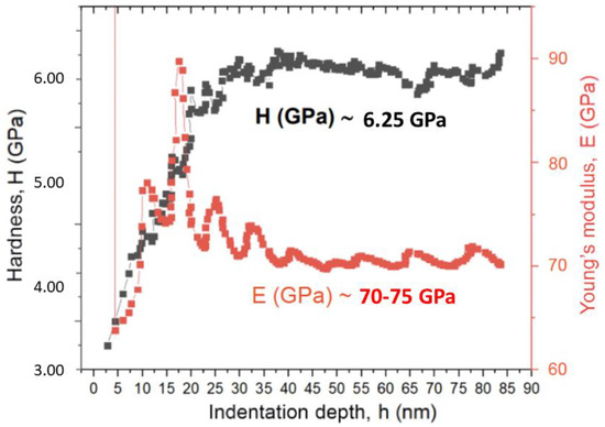 The hardness and elastic modulus curves as a function of penetration depth determined for the metal debris is depicted in Figure 4.