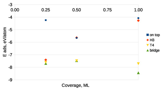 The dependence of the adsorption energy versus coverage is shown in Figure 8.