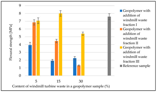 Flexural strength of geopolymer samples with the addition of waste fractions from windmill turbines.