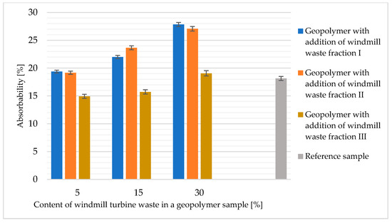 Absorbability of geopolymer samples based on fly ash and sand with the addition of waste from windmill turbines.