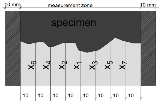 After completion of the test, the specimen is axially split to enable the evaluation of the penetration depth. The average value of the penetration depth (xd) is measured after the use of the silver nitrate solution, as presented in Figure 4.