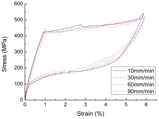 Figure 4. Stress-strain curve of austenite SMA wire with different loading rates.