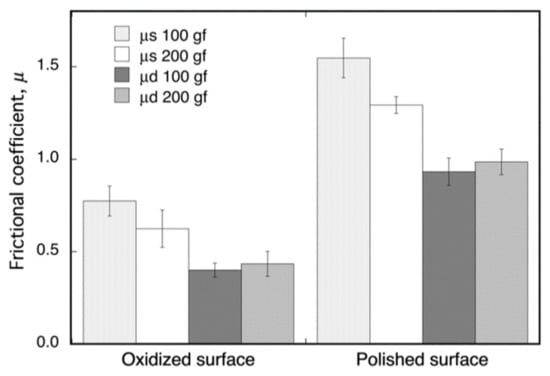 Dynamic (μd) and static (μs) frictional coefficients of oxidized and non-oxidized Ti–29Nb–13Ta–4.6Zr. The oxidation conditions at 1273 K for 1.8 ks in air.
