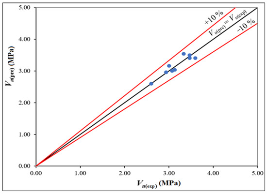 To predict an equation for obtaining the ultimate shear strength of HTGPC beams (Vu(pre)), Equation (10) is modified by replacing Vu(exp) with Vu(pre). Thus, the modified equation for predicting the shear strength of HTGPC is obtained as,