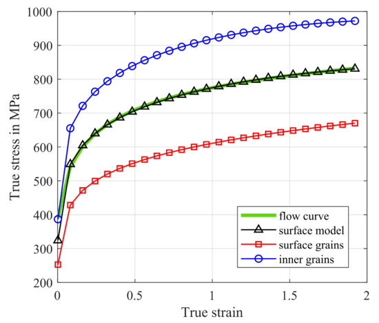 By combining the above-mentioned models as introduced by Korpała et al. [31], it is possible to describe various types of hot working flow curves under kinetic conditions with recrystallization and simultaneous grain growth. In the present study, the microstructure model is applied to calculate the grain size distribution in the hot strip for a given stress, strain, strain rate, and temperature. These necessary information at defined position in a hot strip are calculated by the layer model as described above.